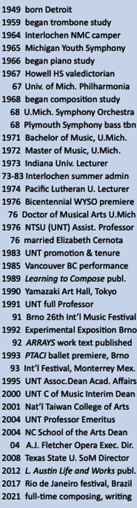 Ann Arbor, 1968 — Having begun composing in 1963, I started formal composition study in 1968 at the University of Michigan in Ann Arbor. American composer Eugene Kurtz, based in Paris but filling in that semester at Michigan, was assigned to teach the new freshman. A proponent of modern French music, his compositional models included…